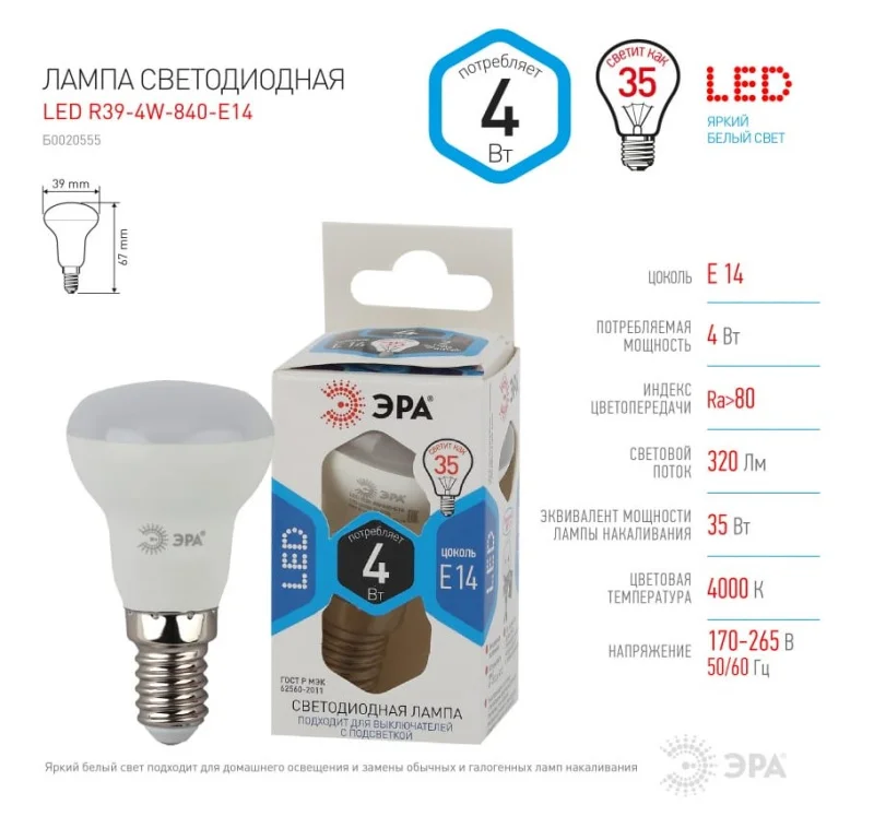 Светодиодная лампа, оснащенная цоколем Е14 выделяется своим нейтральным белым светом и современными характеристиками. Позволяет снижать потребление энергии до 90%, по сравнению с традиционными лампами накаливания с аналогичной световой отдачей. Её яркое белое освещение максимально близко к естественному дневному свету, что делает её идеально подходящей для ежедневного бытового использования. Мгновенное включение и равномерное распределение света делают её подходящей как для люстр, так и для настольных ламп и бра.