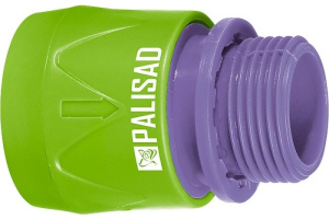 Пластмассовый быстросъемный соединитель Palisad 66175 с внешней резьбой 3/4 дюйма используется для подключения шланга через переходник к крану или отводу, имеющему выход с внутренней резьбой. Облегчает монтаж поливочной линии на дачном участке.