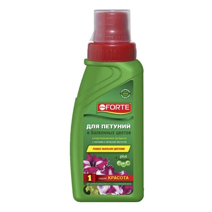 Серия КРАСОТА создана лабораториями Bona Forte для усиления декоративности и стимулирования роста растений. Подходит для петуний всех сортов и расцветок, а также, для анютиных глазок, ампельных фуксий, бархатцев, вербены, герани, лобелии. Удобрение содержит полный комплекс веществ, необходимых для полноценного и сбалансированного питания растений
