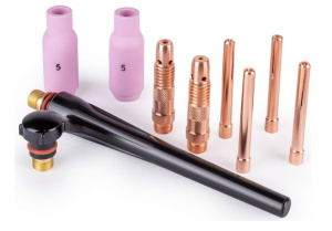 Набор комплектующих для TIG17/18/26 FOXWELD 3494 включает в себя 10 предметов, которые необходимы для качественных работ по металлу различного типа, производимых в среде из защитного аргона.