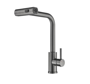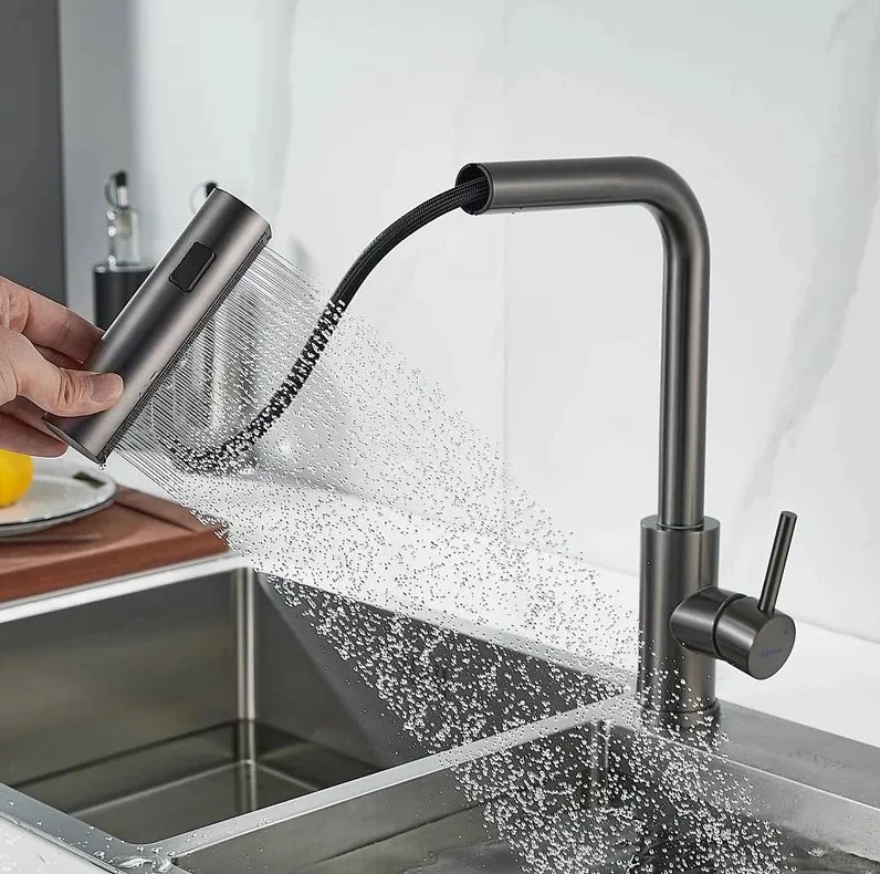 Одним из ключевых преимуществ данного смесителя является съемный выдвижной поворотный излив, который можно легко снять и повернуть в любую сторону. Излив предлагает 3 различных режима подачи воды: стандартный режим подходит для повседневного использования, турбо-струя идеальна для удаления сложных загрязнений, а режим широкой струи с мягким напором идеально подходит для быстрой очистки больших поверхностей, например, кухонной посуды с большим диаметром и разделочных досок.