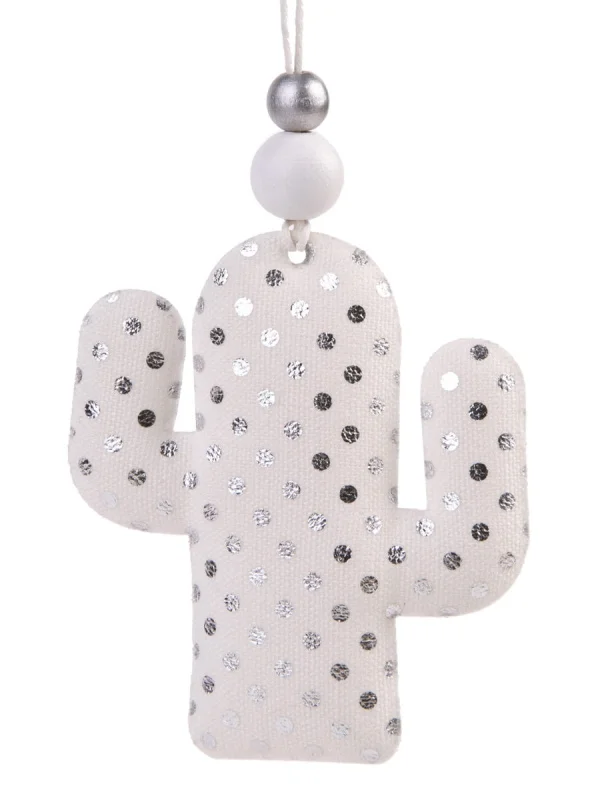 Новогоднее подвесное украшение Кактус с серебряными кружочками из хлопчатобумажной ткани / 7,5x1,5x8,5см арт.80210