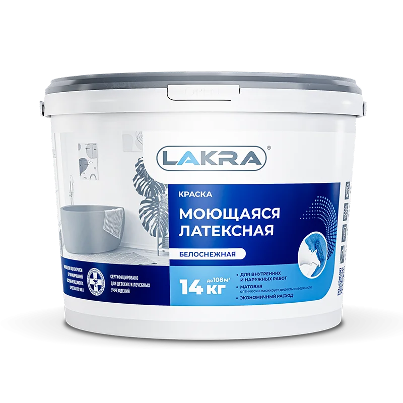 Воднодисперсионная краска, образует экономичное и прочное декоративное покрытие. Имеет хорошую адгезию к основанию и укрывистость. Устойчива к легкой влажной уборке. Образует ровное матовое покрытие, скрывающее косметические дефекты поверхности. Не мелит.