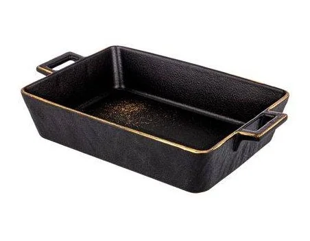 Коллекция "MIDNIGHT GOLD" ТМ BRONCO - это ультрамодная сервировка стола. Черный с золотыми брызгами и окантовкой фарфор. Глубокое матовое покрытие. Каждый предмет коллекции уникален. Тарелки в виде форм для запекания, сковородок, чугунков, элементы поверхности гриль на дне изделий - все это делает Ваш стол неповторимым! Посуда прошла сертификацию. Безопасна для контакта с пищевыми продуктами. С осторожностью использовать изделия в посудомоечной машине и микроволновой печи по причине возможного повреждения золотого декоративного покрытия. Рекомендуется применять мягкие средства для мытья в посудомоечной машине.