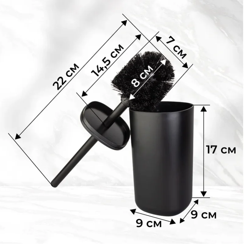 Изделие включает в себя ерш с ручкой и пластиковую подставку прямоугольной формы. Влагоустойчив. Щётка имеет густой жесткий ворс, обладает высокой стойкостью к стиранию. Наличие на ручке ершика крышки-является одним из достоинств данного изделия, поскольку эстетично скрывает щетку ерша и содержимое чаши.