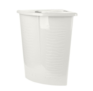 Корзина для белья угловая выгодно отличается от стандартных прямоугольных или круглых бельевых корзин своей формой. Она легко размещается в углу, экономя пространство ванной комнаты. Вся лицевая стенка бельевой корзины - цельная, без прорезей, что позволит скрыть от глаз ненужные предметы. Отверстия для вентиляции находятся сзади и они не видны. Объем корзины для белья Aqua составляет 40 литров, ее внешние габариты 50х37х54 см. Широкая и устойчивая крышка предполагает ее использование в качестве дополнительной полезной поверхности. Благодаря широкому канту по верхним краям, корзину легко поднимать и переносить. Сделана из легкого и прочного пластика.