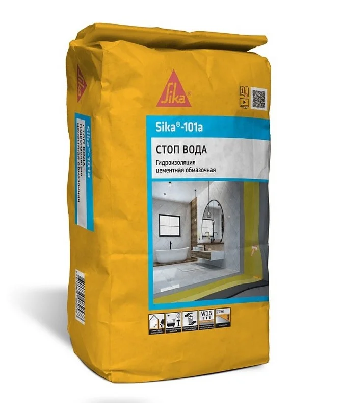 Sika-101a – Тонкослойная гидроизоляция на цементной основе.Однокомпонентный раствор на цементной основе, содержащий специальные гидрофобизирующие добавки. После смешивания с водой до консистенции раствора состав наносят на бетонные основания для гидроизоляции и защиты конструкций от проникновения воды.