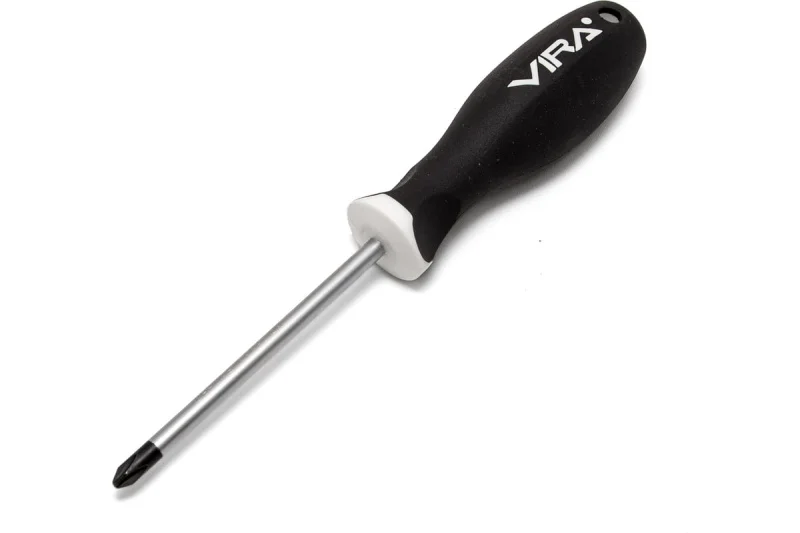 Отвертка RAGE by VIRA PZ2x100. Отвертки RAGE by VIRA изготовлены из хром-ванадия Твердость 48-52 HRC. Отвертка в два раза превосходит международный стандарт DIN по показателю предельного крутящего момента. Все отвертки серии имеют магнитный наконечник – мелкий крепеж, детали будет удобнее вворачивать или извлекать, сложнее потерять. Мы привели геометрию жала отвертки в соответствие с промышленным стандартом – оно без люфта помещается в шлице крепежа, благодаря точной обработке углов наконечника. Работая нашей отверткой, Вы не только сбережете шлиц шурупа, но и надолго сохраните сам инструмент, снизите усилия на вращение. Отверстие в рукоятке можно использовать для подвешивания отвертки на стенде, а можно вставить в него вороток для дополнительного усиления крутящего момента. Мы называем рукоятку отвертки RAGE by VIRA анатомической, потому что она имеет сглаженную трехгранную форму, которая удобно обхватывается рукой, а большой палец естественным образом вкладывается в одно из углублений. Все перечисленные особенности ручки дают возможность создавать больший крутящий момент при меньших усилиях с вашей стороны. Рукоятки отверток выполнены из прочного пластика и упругой резины TPR. Такое сочетание материалов делает ручку крепкой, но мягкой для вашей ладони. Никаких царапающих швов и резких граней. Резиновое покрытие обладает антискользящим эффектом. Размер шлица: PZ2, длина стержня 100 мм.