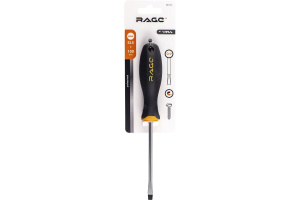 Отвертка RAGE by VIRA SL5x100. Отвертки RAGE by VIRA изготовлены из хром-ванадия. Твердость 48-52 HRC. Отвертка в два раза превосходит международный стандарт DIN по показателю предельного крутящего момента. Все отвертки серии имеют магнитный наконечник – мелкий крепеж, детали будет удобнее вворачивать или извлекать, сложнее потерять. Мы привели геометрию жала отвертки в соответствие с промышленным стандартом – оно без люфта помещается в шлице крепежа, благодаря точной обработке углов наконечника. Работая нашей отверткой, Вы не только сбережете шлиц шурупа, но и надолго сохраните сам инструмент, снизите усилия на вращение. Отверстие в рукоятке можно использовать для подвешивания отвертки на стенде, а можно вставить в него вороток для дополнительного усиления крутящего момента. Мы называем рукоятку отвертки RAGE by VIRA анатомической, потому что она имеет сглаженную трехгранную форму, которая удобно обхватывается рукой, а большой палец естественным образом вкладывается в одно из углублений. Все перечисленные особенности ручки дают возможность создавать больший крутящий момент при меньших усилиях с вашей стороны. Рукоятки отверток выполнены из прочного пластика и упругой резины TPR. Такое сочетание материалов делает ручку крепкой, но мягкой для вашей ладони. Никаких царапающих швов и резких граней. Резиновое покрытие обладает антискользящим эффектом. Размер шлица: SL5, длина стержня 100 мм.