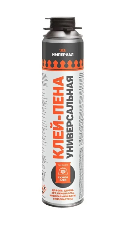 Клей-пена профессиональная Империал представляет собой однокомпонентный полиуретановый материал в аэрозольной упаковке. Не обладает адгезией к фторопласту, силикону и полиэтилену.