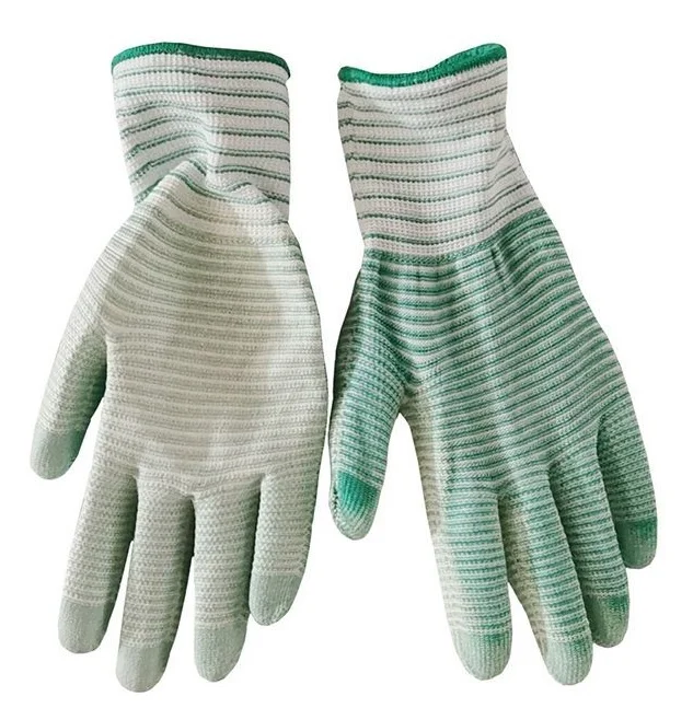 Перчатки нейлоновые с полиуретановым покрытием. Перчатки обливные с частичным покрытием ладони и пальцев полиуретан. Отличные показатели механической защиты, ограниченная стойкость к масляным загрязнениям, высокая чувствительность пальцев, комфорт при длительном использовании, плотное прилегание. Перчатки практически не ощущаются на руке, не стесняют движений. Применение: сборочные операции, где возможны незначительные общепромышленные, масляные и прочие загрязнения, электронная промышленность. Цвет: зелено-белый. Материал: нейлон. Покрытие: полиуретан на область ладони и пальцев. Размер: 8.