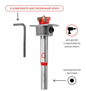 Сверло Форстнера 15 мм по дереву с ограничителем VIRA для присадки эксцентриковой стяжки: Диаметр сверла 15 мм; Длина сверла 79 мм; Рабочая длина 13 мм; Съемный ограничитель; Диаметр отверстия ограничителя 8 мм; Материал сверла CS45; Материал зубцов YG8; Твердость 40-50 HRC; Для сверления глухих отверстий в древесине, ЛДСП, фанере, пластике; Для сверления сквозных остверстий при проведение сантехнических работ, прокладке коммуникаций; Подходит для присадки эксцентриковой стяжки; Цилиндрический хвостовик совместимый быстрозажимного патрона типа 0.8 - 10 мм и выше; Рекомендуемая скорость - от 1000 до 2000 об./ мин.;