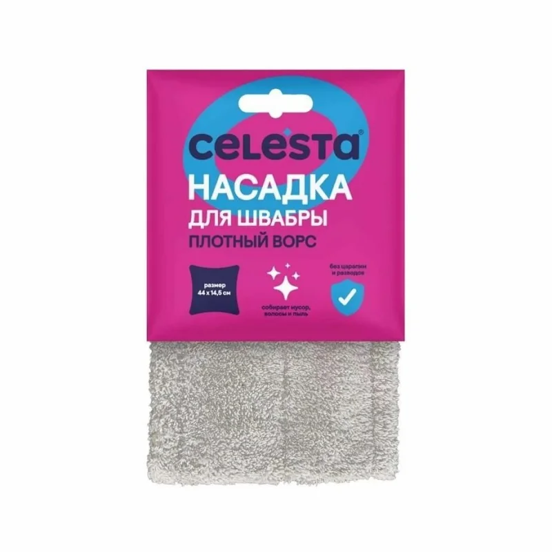 Насадка для швабры CELESTA "Плотный Ворс" произведена из высококачественной фибры. Благодаря короткому ворсу повышенной плотности, собирает волосы, мусор и даже пыль! Подходит для любых поверхностей. Не оставляет царапин и разводов. Работает без моющих средств и подходит для сухой и влажной уборки. Ее легко мыть и можно стирать в стиральной машинке.