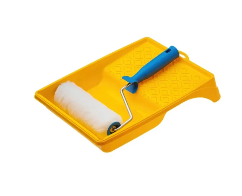 Малярный набор АКОР Для стен включает в себя валик и ванночку. Эта комбинация хороша тем, что инструмент четко подобран по размеру.Валик имеет прочное основание, которое выдерживает продолжительные нагрузки. Внешний слой также обладает хорошей устойчивостью к износу. А ванночка обладает ровной формой на протяжении всего времени использования. Это снижает риск случайного пролива.