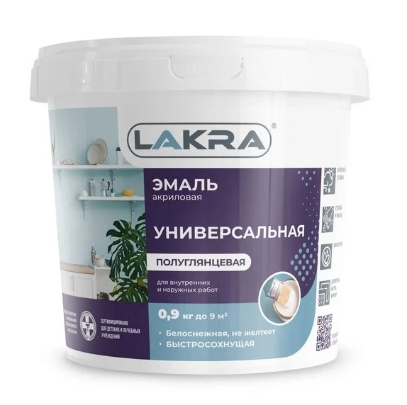 Универсальная акриловая эмаль Лакра белая используется для покраски деревянных, бетонных, кирпичных поверхностей, а также обоев. Обладает значительными защитными и декоративными свойствами. Отличается стойкостью к пожелтению, воздействию температуры и влаги.