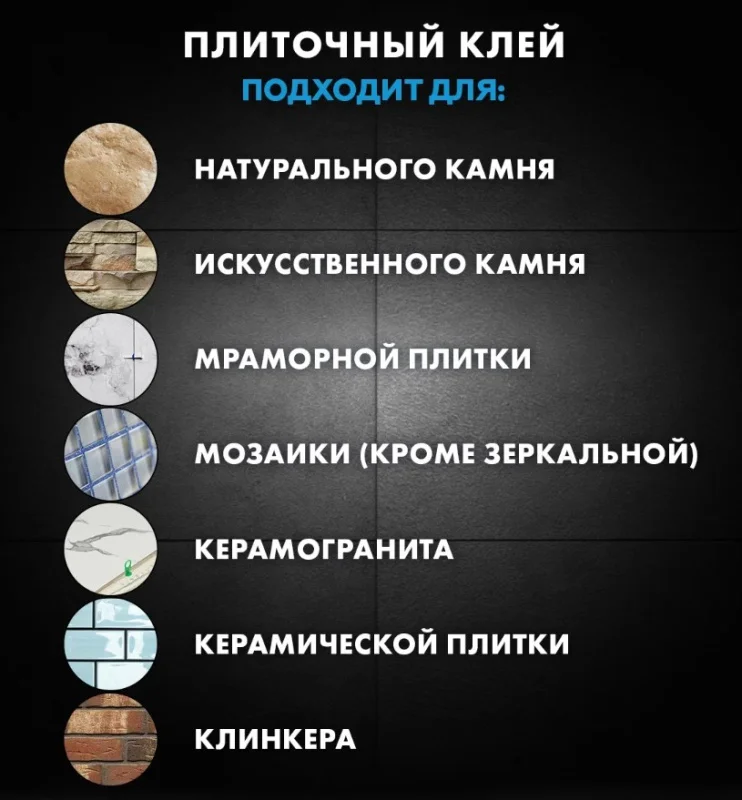 Клей для крепления всех видов плитки для наружных и внутренних работ