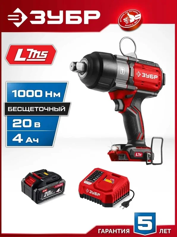 Бесщеточный ударный гайковерт ЗУБР системы LMS с максимальным крутящим моментом 1000 Нм предназначен для фиксации резьбовых соединений размером до М26. Ударная функция с тангенциальным направлением удара обеспечивает эффективное заворачивание без реактивного момента на кисть оператора. Комплектация с аккумулятором большой емкости позволяет работать дольше на одном заряде.