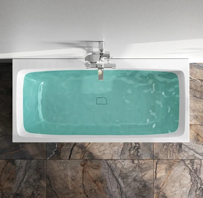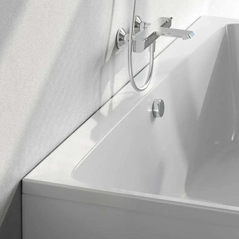 Характерный дизайн: сочетание широкого борта с одной стороны с ультра-тонким бортом с другой стороны создает неповторимую квинтэссенцию стиля. А декоративная заглушка слива, повторяющая форму самой ванны, станет яркой деталью в интерьере.