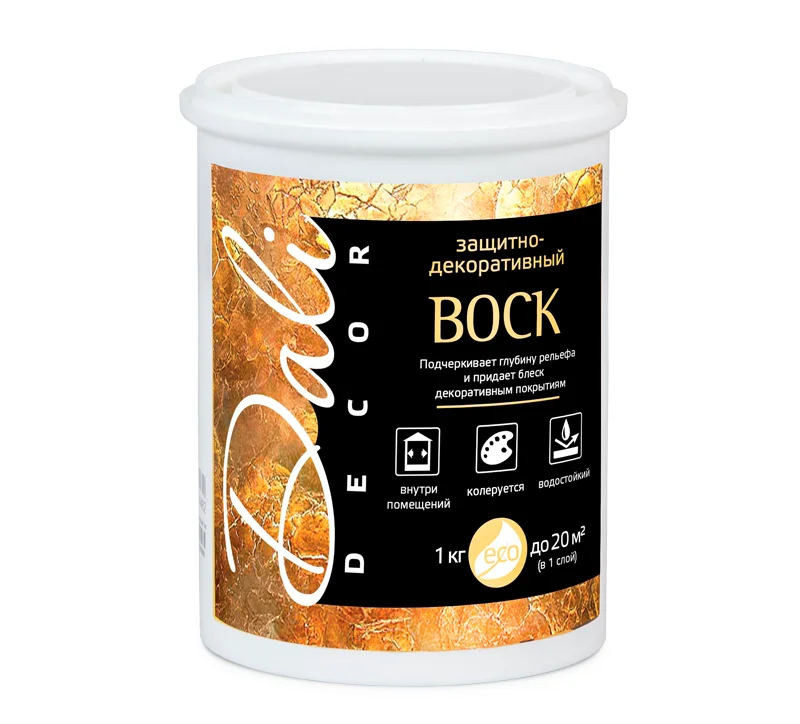 DALI является защитным и декоративным воском, разработанный специально для подчеркивания глубины и текстуры рельефа и придания неповторимого блеска. Он используется для создания финишной отделки внутри помещений и усиления фактуры любых декоративных штукатурок. Покрытие, которое обработано этим средством, становится гладким и глянцевым, отличается повышенной устойчивостью к влаге и загрязнениям. DALI отличается своим легким нанесением и распределением по всем поверхностям, выдерживает влажную уборку и не имеет запаха, может быть вручную колерован.