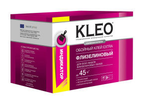 KLEO EXTRA – это клей, разработанный специально для флизелиновых обоев, включая виниловые обои с флизелиновой подложкой, а также для ремонтного флизелина (малярного). Клей КЛЕО ЭКСТРА доступен в упаковках различного объема (от 35 до 55 м²), в том числе с индикатором для контроля нанесения, а также в готовом к применению виде в ведрах объемом 5 и 10 кг.