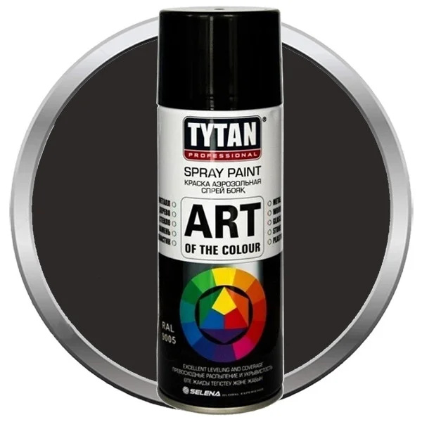 Краска Tytan Professional Art of the colour аэрозольная черная глянец 9005 – это быстросохнущая акриловая краска, используемая как универсальное отделочное покрытие для промышленного и бытового применения. Она отличается своей универсальностью, пригодна для применения в различных сферах, быстро высыхает при использовании в качестве покрытия в различных условиях. Краска может применяться внутри и снаружи помещений. Обладает хорошей укрывистостью, быстро сохнет, не крошится и не шелушится.