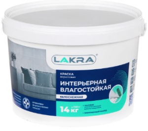 Эта водно дисперсионная интерьерная влагостойкая краска от Лакры является отличным выбор для покраски стен и потолков во влажных помещениях. Матовый финиш оптически скрывает недостатки поверхности, а экономичный расход и удобство нанесения делают процесс простым и приятным. Морозостойкость и влагостойкость делают эту краску идеальным выбором для сложных условий. Ее можно заколеровать водными или универсальными пигментами. Она также рекомендована для использования в детских и медицинских учреждениях благодаря своей безопасности. Высококачественная краска на водной основе акриловой дисперсии обеспечивает влагостойкое, дышащее покрытие, которое легко чистится влажной тканью.