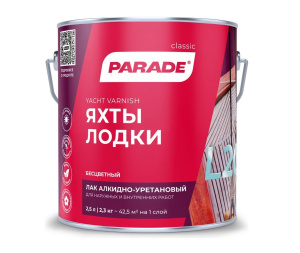 PARADE L20 яхтный лак с алкидно уретановой основой, который обеспечивает высокую стойкость к влаге, УФ-лучам и температурным колебаниям. Подходит для использования на всех видах судов, а также оконных рамах, деревянных дверях и стенах. Защищает деревянные поверхности от неблагоприятных климатических условий внутри и снаружи помещений, отличается отличной эластичностью и износостойкостью.