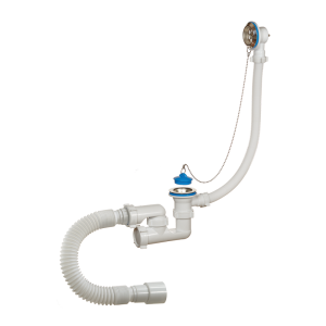 Сифон 1 1/2"х40, с переливом и нержавеющими чашками, для ванн и глубоких душевых поддонов. Конструкция сифона позволяет прочищать сифон, не демонтируя. В комплекте латунная цепочка с пробкой. Отвод в канализацию гибкая труба 40 – 40/50.
