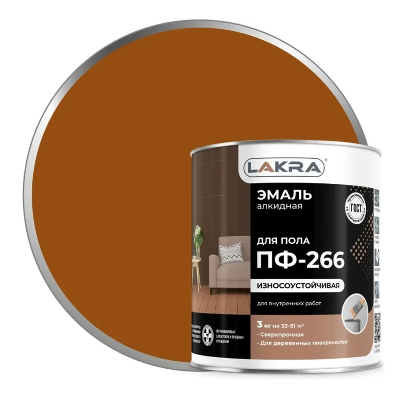 Эмаль ПФ 266 является предназначена для окрашивания как новых, так и поврежденных полов и других деревянных поверхностей внутри помещений. Главное преимущество эмали заключается в ее отличных эстетических характеристиках. Покрытие обладает высоким блеском, придавая деревянной поверхности элегантный вид. Более того, материал обладает повышенной износостойкостью, что гарантирует долговечность покрытия.