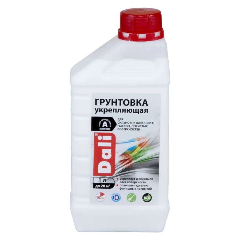 DALI краска грунт используется при подготовке поверхностей перед финишной отделкой. Грунтовка снижает расход материалов, увеличивает срок службы покрытий и выравнивает основания. Эта краска также повышает адгезию финишного покрытия. В качестве финишного покрытия она может использоваться для обработки фасадов, стен и потолков.