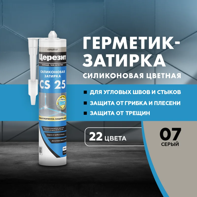 Затирка CS 25 на основе силикона. Применяется в помещениях с нормальным и повышенным влажностным режимом, используется для герметичности швов, отлично справляется в местах примыкания сантехники к стенам.