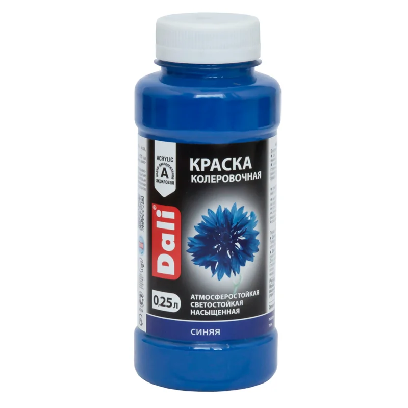 DALI краска колеровочная предназначенная для различных строительных и декоративных работ. Она идеально подходит для тонирования водно дисперсионных красок, эмалей, шпатлевок, декоративных штукатурок и других материалов. Краска может использоваться как самостоятельное покрытие на любых поверхностях внутри и снаружи помещений, включая бетон, кирпич, штукатурку, дерево, бумагу, обои и многое другое. Основное преимущество краски колеровочной заключается в ее свойствах. Во-первых, она не имеет неприятного запаха, что делает ее более приятной в использовании. Во-вторых, краска обладает высокой адгезией к любым основаниям, что гарантирует прочное и долговечное покрытие. Является светостойкой, что означает, что она не выгорает под воздействием УФ излучения, и выдерживает сезонные колебания температуры.