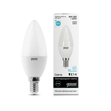 Светодиодные лампы GAUSS Elementary Candle выполнены в дизайне, имитирующем свечу. Эти лампы идеально подходят как для жилых, так и для коммерческих пространств. Они прекрасно смотрятся в светильниках без абажуров, а также в люстрах и настенных светильниках. Разнообразие цветовых температур и мощностей ламп позволяет создать уютную или рабочую атмосферу. Их однородное свечение обеспечивает визуальный комфорт в любом помещении. Светодиодные лампы GAUSS гарантируют надежную работу на протяжении всего срока эксплуатации.