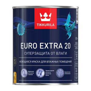 Краска для влажных помещений EURO EXTRA 20 водоразбавляемая краска предназначена для использования во влажных и сырых помещениях, таких как ванные комнаты, кухни, туалеты и прачечные. Она подходит для окрашивания стен и потолков, а также для радиаторов в сухих помещениях. Она устойчива к пару от бытовых приборов и конденсации, а также защищает от образования плесени и грибка. Эта краска может использоваться в детских учреждениях и административных помещениях медицинских учреждений.