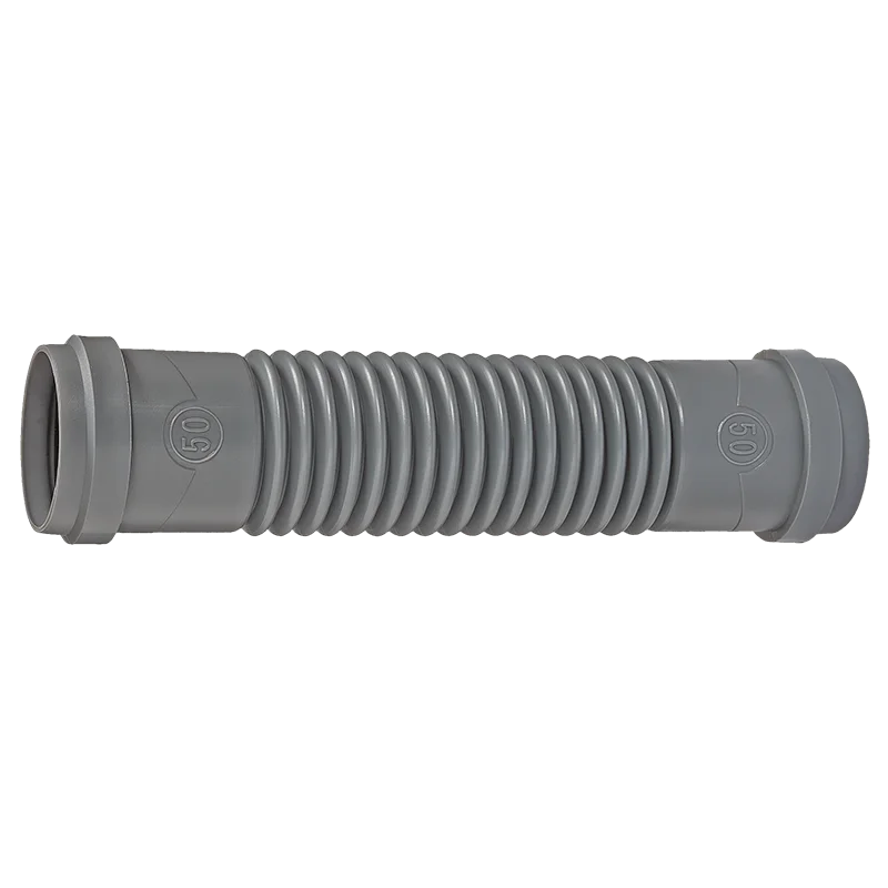 Отвод канализационный гибкий из полипропилена, мама-мама, для соединения гладких труб между собой под углом в сложных местах. Вход и выход д.50мм.