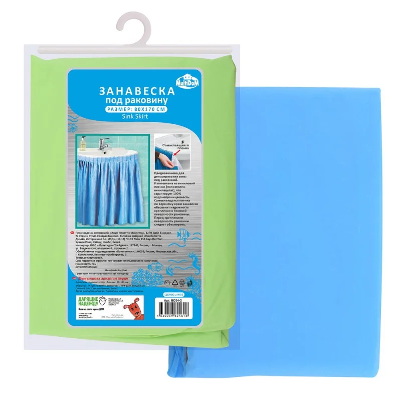 Шторка для раковины МУЛЬТИДОМ размером 80х170 см BD34-2 позволяет скрыть трубы, а также добавляет место для хранения различных хозяйственных предметов.