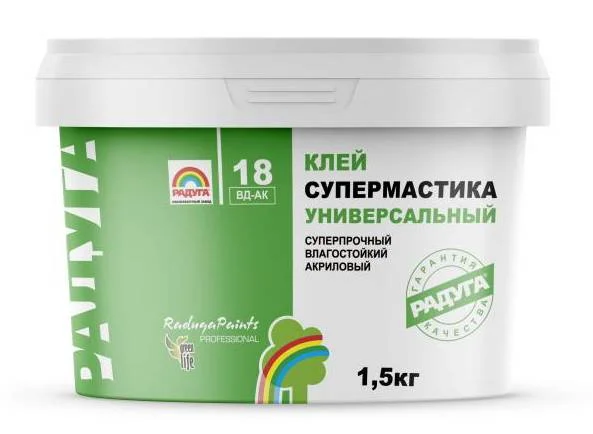 Клей Радуга ВДАК Р 18 подходит для приклеивания различных типов покрытий, таких как керамическая плитка, паркет, линолеум, пробковые и ковровые покрытия, к различным типам поверхностей внутри помещений. Клей не имеет запаха, нетоксичный и пожаробезопасный. Он безвреден для здоровья и окружающей среды. Обладает великолепной клеящей способностью, быстро схватывается и обеспечивает прочное и эластичное соединение.