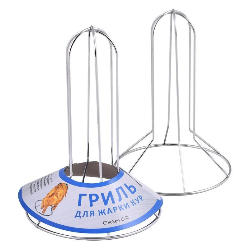 Используется при приготовлении кур в духовке. Конструкция гриля обеспечивает равномерное обжаривание курицы, что придает мясу птицы нежность и улучшает его вкусовые качества. Изготовлен из стальной хромированной проволоки.