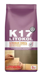 LITOKOL К17 профессиональная клеевая смесь на цементной основе обладает высокими адгезивными свойствами и предназначена для укладки керамогранита, керамической плитки (одно- и двукратного обжига) размером до 50х50 см, керамической мозаики, для внутренних и наружных работ, для помещений с любым уровнем влажности.