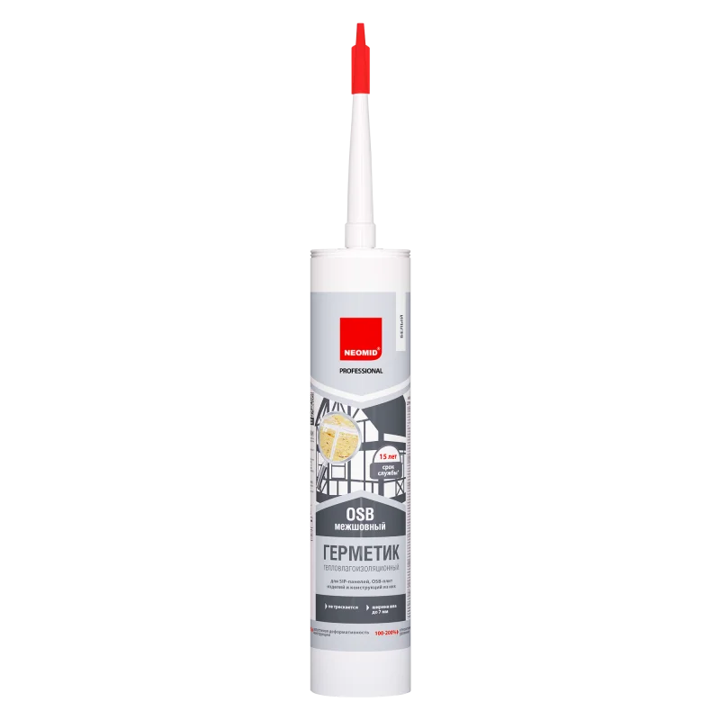 Герметик для OSB плит и деревянных поверхностей Neomid отличается высокой эластичностью и адгезией. Благодаря этим свойствам, состав великолепно держится на горизонтальных, вертикальных и наклоненных под любым углом поверхностях. Главным назначением герметика является заделка швов между OSB плитами после их монтажа и щелей в деревянных конструкциях. Также, он идеально подходит для обработки мест примыкания конструкций к фундаменту или кровле. Нанесение герметика позволяет создать надежную и герметичную поверхность, которая защищает от проникновения влаги, грязи и других вредных внешних факторов. Кроме того, благодаря высокой эластичности герметика, он способен компенсировать небольшие движения и деформации деревянных материалов, что обеспечивает долговечность и надежность конструкции. После нанесения и высыхания герметика, швы и поверхности можно окрашивать. Это дает возможность подобрать цвет, соответствующий общему дизайну и стилистике объекта. Окрашенные швы и поверхности не только имеют эстетическое значение, но и добавляют дополнительную защиту от атмосферных явлений и внешних воздействий.