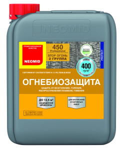 Неомид 450 является средством для огнебиозащиты древесины, предназначено для работ внутри и снаружи помещений. Оно переводит древесину в трудновоспламеняемый и трудногорючий материал и обеспечивает I группу огнезащитной эффективности. Этот продукт защищает древесину от гниения и образования плесени, а также от биологических поражений. Он предназначен для использования на деревянных конструкциях и изделиях, таких как стены, балки, строительные системы, несущие брусья, перекрытия, лаги, оконные и дверные блоки и многих других.