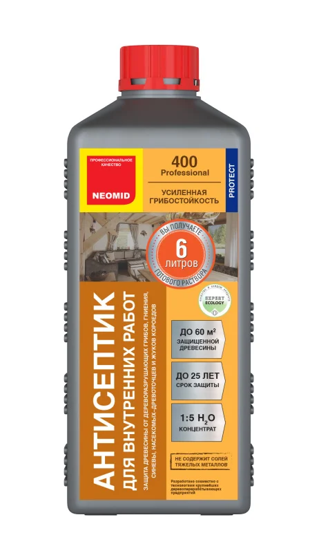 Продукт NEOMID 400 предотвращает биопоражение, а также способен остановить уже начавшиеся процессы разрушения древесины биологическими агентами. Благодаря его высокой эффективности, древесина сохраняет свою прочность и долговечность на протяжении продолжительного периода времени. Это средство отличается надежностью и долговечностью, создавая защитный барьер, который эффективно препятствует разрушительным воздействиям микроорганизмов. NEOMID 400 проникает глубоко в структуру древесины, обеспечивая долгосрочную защиту от гниения и разложения.